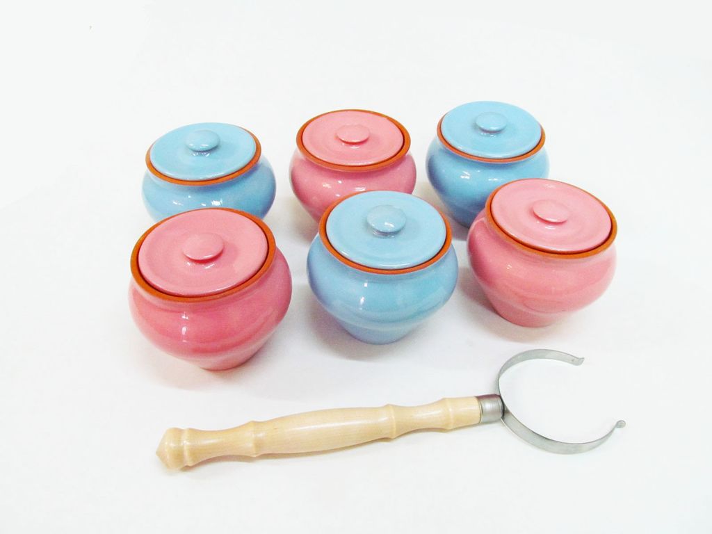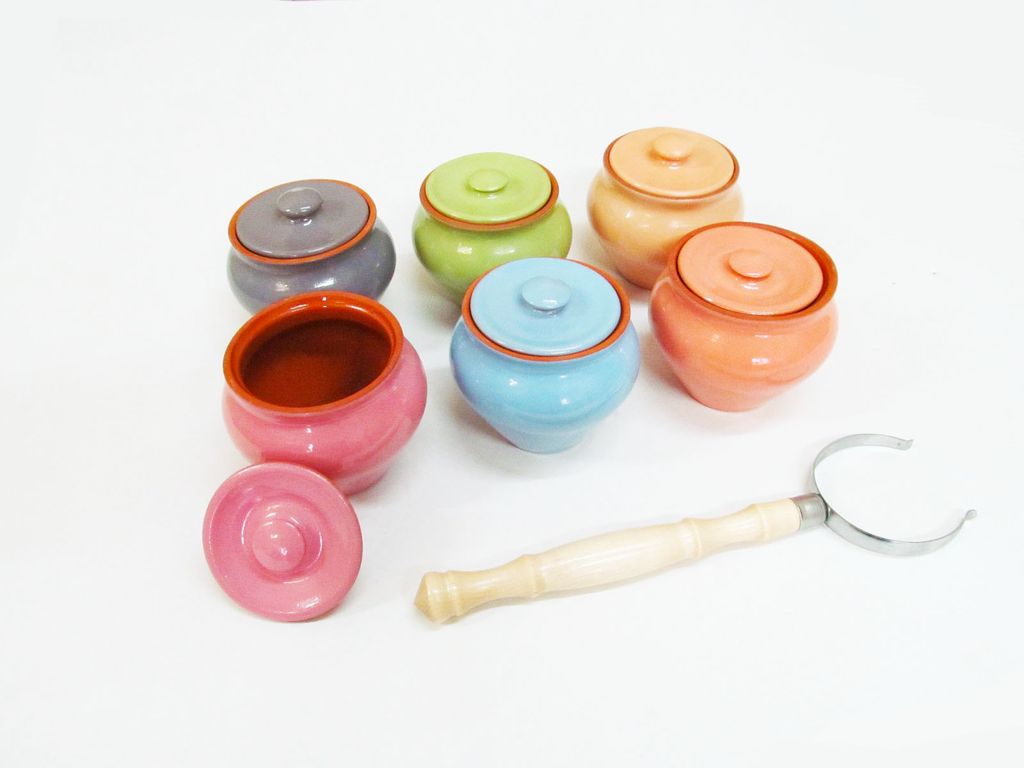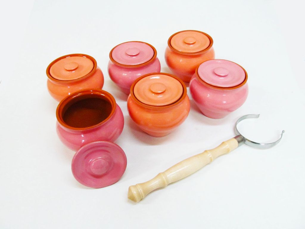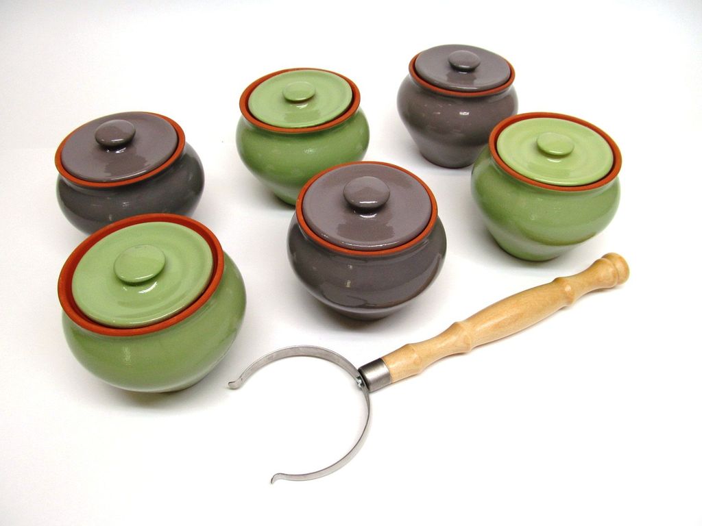 Набор из 6-и горшков, емкостью 0,7 л, с ухватом.