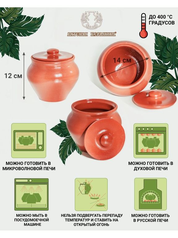 Можно использовать в духовой печи и СВЧ; можно использовать в русской печи до 400 градусов; можно мыть в посудомоечной машине.
